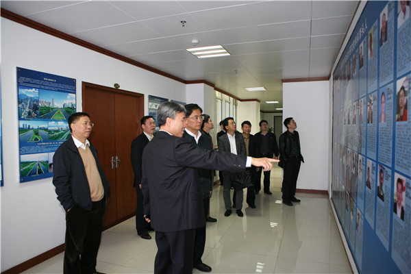 楊洪常委一行首先在陳宜言大師引領下參觀了我司辦公場所、博士后科研工作站、BIM設計研究院,學科帶頭人展示墻,并在我司技術交流中心開展交流座談。