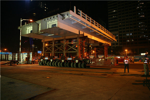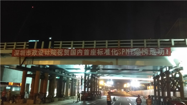 2017年9月22日至23日,國內(nèi)首架采用標(biāo)準(zhǔn)化SPMT技術(shù)施工的“深圳市崗廈北綜合交通樞紐工程—鋼便橋”架設(shè)成功。架設(shè)方案由我公司提出,完全符合業(yè)主方地鐵集團對于降低施工現(xiàn)場對環(huán)境及交通影響的要求,中國中鐵第二工程局具體實施。