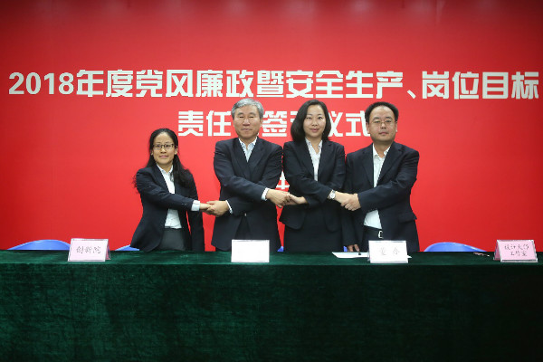 儀式開始,黨委書記、董事長(zhǎng)陳宜言與黨委副書記、總經(jīng)理蔡明和黨委副書記、紀(jì)委書記、工會(huì)主席郭明簽署了《2018年度崗位目標(biāo)責(zé)任書》、《2018年度黨風(fēng)廉政責(zé)任書》及《2018年度安全生產(chǎn)責(zé)任書》。黨委副書記、總經(jīng)理蔡明與副總經(jīng)理歐陽(yáng)宇峰、副總經(jīng)理王建新、副總經(jīng)理張健君、副總經(jīng)理許華林、總工程師徐波簽署責(zé)任書。緊接著,各分管領(lǐng)導(dǎo)與分管部門負(fù)責(zé)人簽署責(zé)任書。