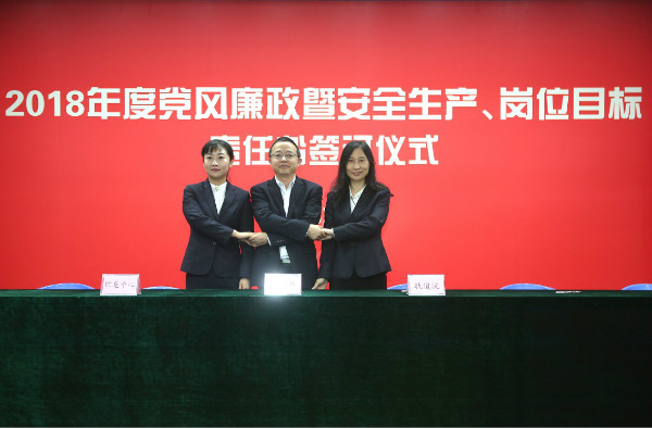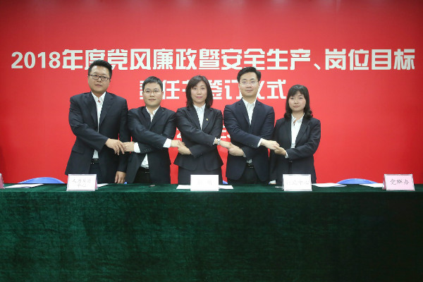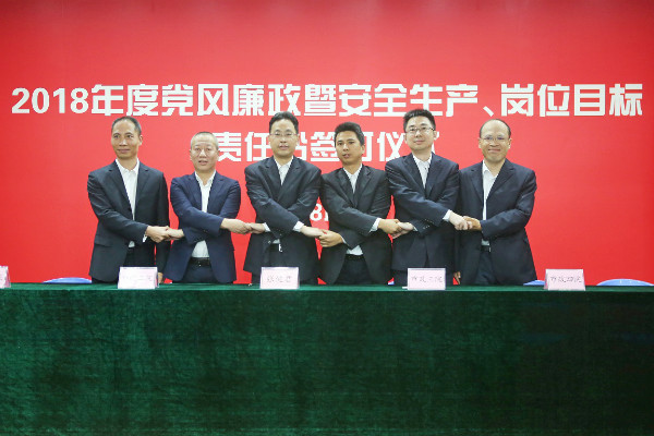 “千斤重?fù)?dān)眾人挑,人人肩上有指標(biāo)”,2018年黨風(fēng)廉政暨安全生產(chǎn)、崗位目標(biāo)責(zé)任書的簽訂,標(biāo)志著新一年各項(xiàng)工作全面分解落實(shí),希望大家不忘初心,在新時(shí)代新使命的召喚下,在新思想的引領(lǐng)下,堅(jiān)韌不拔,鍥而不舍,腳踏實(shí)地,確保2018年度各項(xiàng)目標(biāo)圓滿完成,公司發(fā)展更上一個(gè)臺(tái)階。