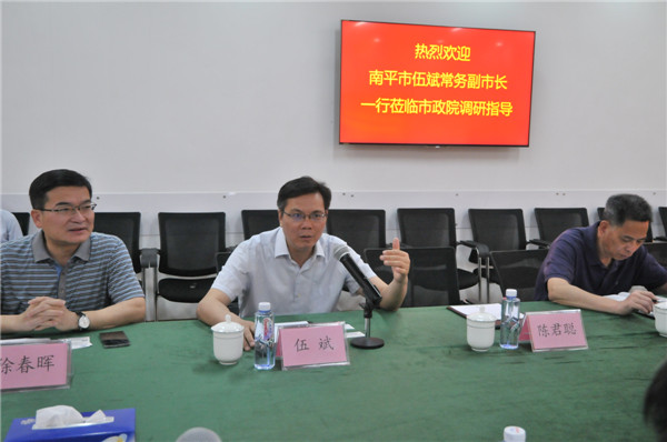 2018年4月27日上午,南平市常務(wù)副市長伍斌一行蒞臨我公司調(diào)研指導(dǎo),公司總經(jīng)理蔡明、副總經(jīng)理張健君以及公司相關(guān)部門負(fù)責(zé)人參加座談。
