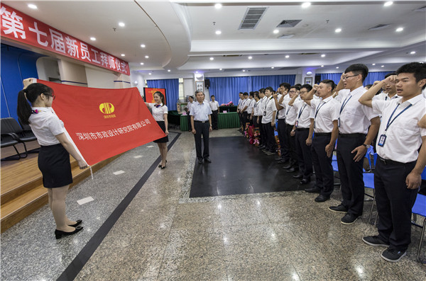 在拜師儀式中,106名新員工依次上臺(tái),向自己的指導(dǎo)老師鞠躬行禮、獻(xiàn)上鮮花并合影留念,106對(duì)師生關(guān)系正式確立。全體師生在公司領(lǐng)導(dǎo)的見(jiàn)證下面向院旗莊嚴(yán)宣誓,承諾導(dǎo)師將嚴(yán)于律己,言傳身教,學(xué)生將謙虛謹(jǐn)慎,勤學(xué)好問(wèn)。隨后,建筑規(guī)劃院李雪雁和市政三院林慶輝、市政四院劉克亞分別代表導(dǎo)師和新員工發(fā)言。