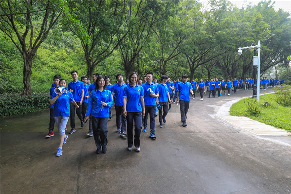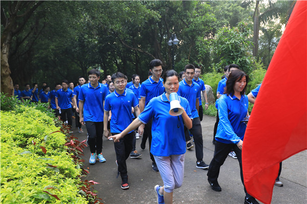 當(dāng)天下午,300余名青年員工統(tǒng)一著裝,前往筆架山公園開展健走活動。健走途中,對植物有獨到研究的同事們發(fā)揮專業(yè)之長,沿途講授植物百科,并帶領(lǐng)大家認(rèn)識了形態(tài)各異的植物:有公園入口迎賓的高大美麗的異木棉、具有150年歷史的古老滄桑的魚木樹、頗有名氣的中國無憂樹、一日落花的印度紫檀、稀有的酸豆樹等等,特別對設(shè)計師們應(yīng)該了解的園林景觀知識點進行普及,加深了大家對設(shè)計理念的思考。迎著秋風(fēng)習(xí)習(xí),踏著落葉片片,在自然之間的我們不僅舒緩了工作壓力,同時發(fā)現(xiàn)植物之美,更是以行走的力量踐行著綠色健康的生活方式,展現(xiàn)出市政院人青春活力的昂揚面貌。