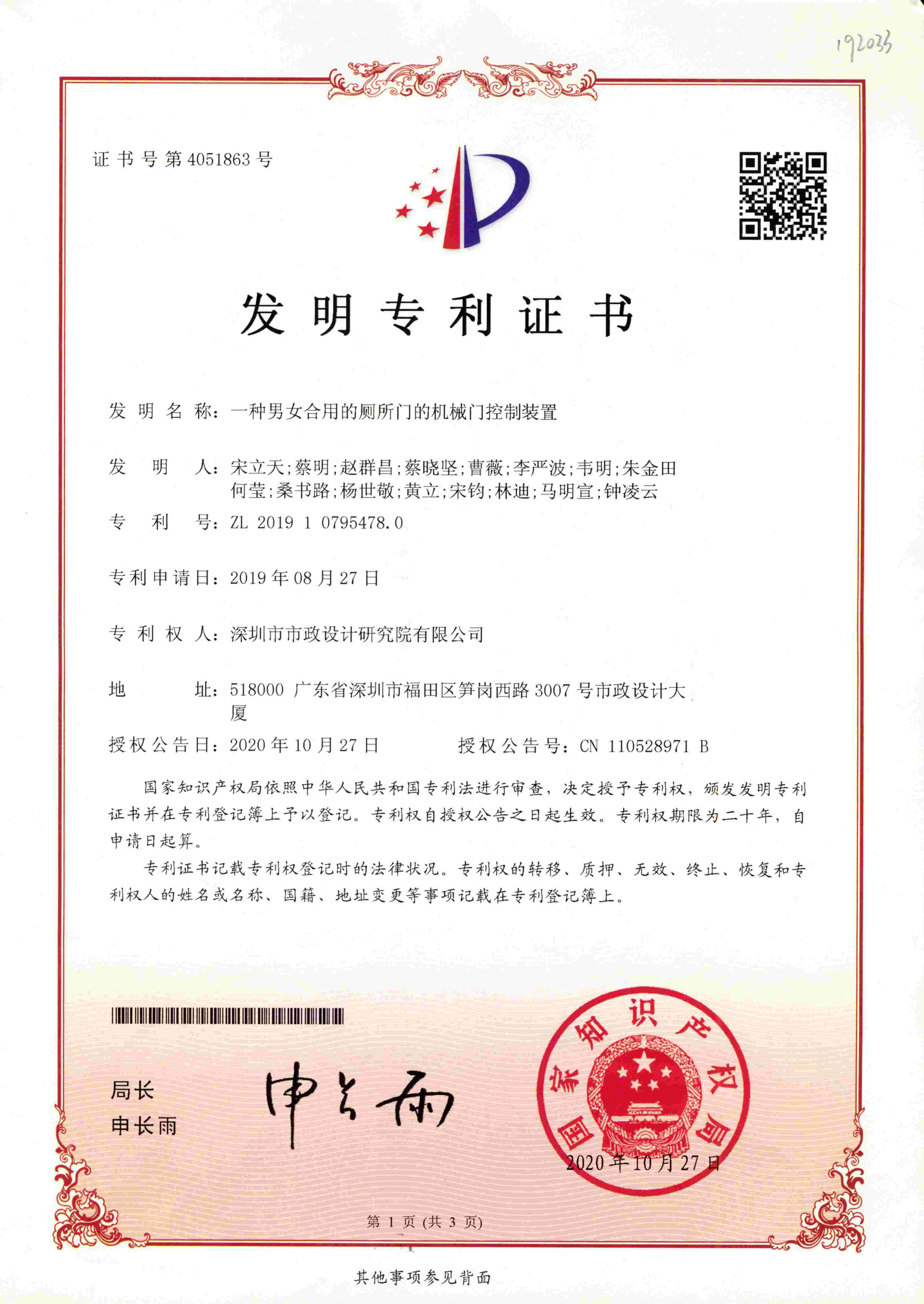 一種男女合用的廁所門的機械門控制裝置