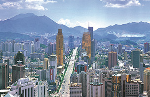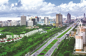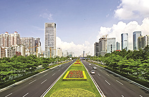 深南大道是深圳市東西向城市客運(yùn)主干道,東起沿河路新秀立交,向西途經(jīng):羅湖區(qū)國(guó)貿(mào)大廈~老街商業(yè)中心、帝王大廈~小平廣場(chǎng)金融中心、華強(qiáng)北電子元器件交易中心、深圳市行政中心、車公廟~竹子林交通樞紐、華僑城旅游娛樂中心、深圳高新技術(shù)產(chǎn)業(yè)園~大學(xué)城區(qū)、南頭城~南山商業(yè)中心,在南頭聯(lián)檢站與107國(guó)道相接,全長(zhǎng)25千米(雙向8~10車道,路幅寬約50~135米)。該道路沿線絢麗多姿的綠化和點(diǎn)綴其間的小品、新穎漂亮的燈飾、整齊清晰的交通標(biāo)志、先進(jìn)的交通監(jiān)控系統(tǒng)等有機(jī)地將人與車融合到環(huán)境之中、動(dòng)態(tài)美與環(huán)境美相互交融,是國(guó)內(nèi)不可多得的園林式道路、深圳市一道靚麗的風(fēng)景線。